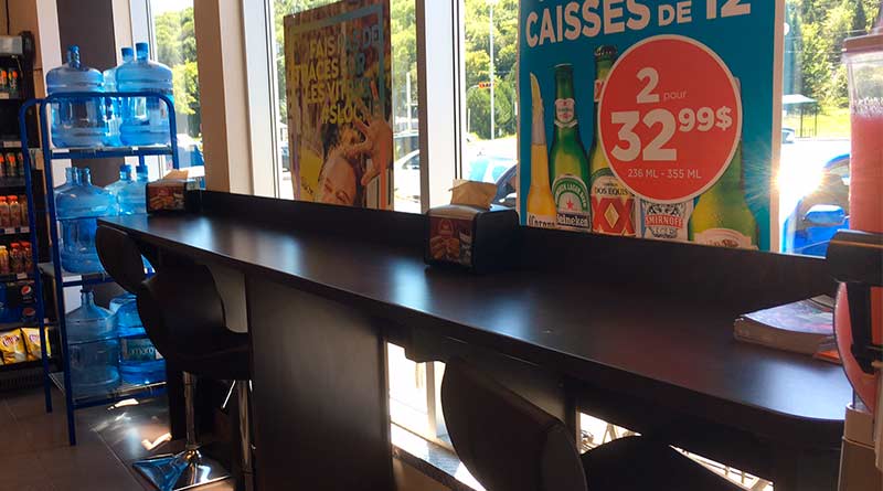 Cold meal wrapped (here, in a Boni-Soir depanneur). The ready-to-eat category has always existed, but it has long been just that: small wrapped sandwiches, which can be kept several days in refrigerated counters. It is the simplest, safest formula and the one generating and the least losses. The selection has, indeed, grown tremendously over the years to include salads, croissants, raw vegetables, cheeses, cut fruits, yogurts and so forth. It is still the most common ready-to-eat application because it is the easiest to implement.Anybody can make sandwiches!Hot meals, starting with hot dogs (here, an Ultramar Dépanneur du Coin from Parkland)! This popular meal requires minimal handling and the equipment used does not require any kitchen space. Note that this product blends perfectly with the other categories sold at the depanneur: soft drinks, chips, confectionery …The hot meal counter (here, a Super Relais Petro-Canada from Suncor). The depanneur is now quite serious with its ready-to-eat offering. It must devote a lot of precious room for a kitchen, ovens and other cooking equiment as well as training employees to cook. This requires a variety of MAPAQ licenses including a mandatory food safety training. But once this done, a depanneur can then offer a real hot meal menu such as fries, fried chicken, pizza and others. Everything is of course to take out and eat on the go.The cafeteria (here, in a Dépanneur du Coin from Parkland). Well yes: even in a 2,500 square foot depanneur, there is a way to cram a real cafeteria with its trays, its own cashier and its full menu! We are quite far away now from the wrapped sandwiches!Bistro style counter (here, in a Couche-Tard). When offering hot meals, it’s nice also to allow your customers to eat on-site. Even if the decor is far from the Fouquet’s and the atmosphere is not that of the Toqué, the commodity obtained is well worth it.And finally, the branded restaurant annexed to the convenience store (here, a Couche-Tard with Tim Hortons). This is the most achieved form of restaurant integration to a convenience store. You can sit down and eat a full menu. The restaurant then becomes a second pole of customer attraction so that either the depanneur or restaurant benefit from secondary sales of the other.